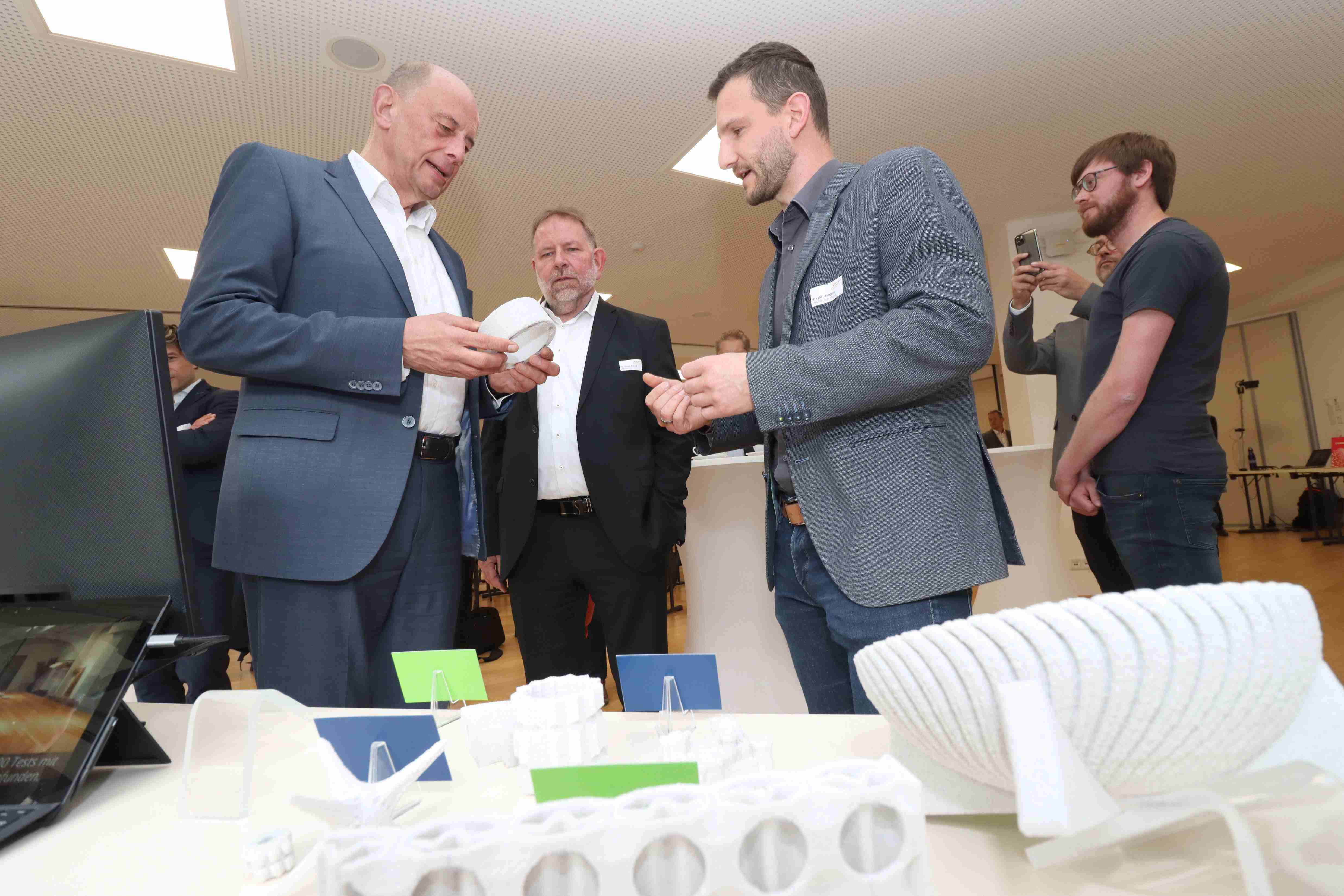 Eine Reihe von Projekten befasst sich mit optischen Technologien – häufig im Medizinbereich. Hier zeigen sich traditionelle Stärken der Thüringer Innovationslandschaft. Auch Xsight Optics als Gewinner des Publikumspreises nutzt die biomedizinische Analyse von Bilddaten für eine kontaktlose Messung von Vitalparametern direkt am Kranken- oder Pflegebett. Ihre Vision ist es, die menschennahe, digitale Pflege auszubauen. Im Unterschied zu den letzten Runden hat sich gezeigt, dass die Themen Nachhaltigkeit und CO2-Reduktion auch zunehmend als Geschäftsfelder für Start-ups interessant werden. So befassen sich zwei Vorhaben mit nachhaltigem Bauen und neuartigen Baustoffen, die darüber hinaus regionale Lieferketten nutzen.